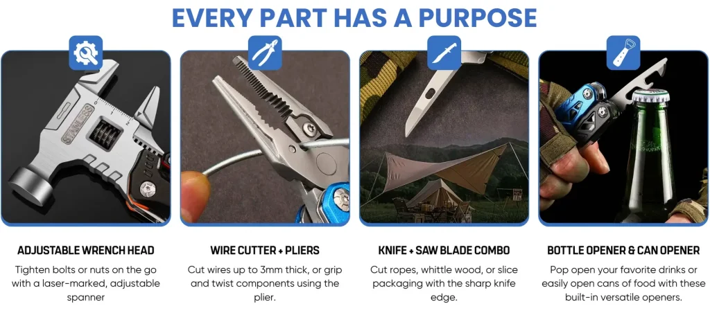 Imagine having an entire toolbox in your hand! With 18 essential functions including a unique adjustable wrench, high-hardness wire cutters, hammer, and knife, this all-in-one solution saves space and keeps you prepared for anything.